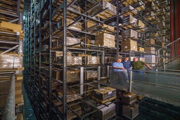 In this warehouse alone, 60,000 pallets are stored and on average over 2,500 pallets are stored and retrieved every day.