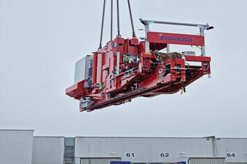 Arvato opted for 14 high-performance MASTer42 storage and retrieval machines (SRMs) from Stöcklin. From March 2023 to January 2024, three devices were replaced every nine weeks during ongoing operations. First, the old rails and equipment were dismantled and removed. This was followed by the installation and assembly of the new guide rails and the new high-performance devices, including the connection of all interfaces. The work was carried out over four days using a 700-tonne lifting-in and lifting-out crane. The installation was carried out through an opening in the roof of the high-bay warehouse, with the incoming and outgoing goods halls within the crane's travel range. Due to the ongoing operation, consideration had to be given to loading and unloading trucks.