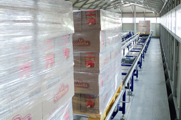 Conservas La Costeña can operate a high throughput on a permanent basis thanks to the very high degree of automation of the new storage and distribution center. The system runs reliably at full load for ten hours a day, six days a week and the hourly throughput is 260 pallets.