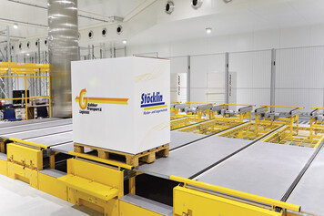 In 2015, Stöcklin built a four-aisle deep-freeze high-bay warehouse with 9,200 pallet storage locations for Galliker Transport AG and supplied four MASTer series storage and retrieval machines. Stöcklin also installed the entire conveyor technology lines, including distribution carts, lifting equipment and elevator systems.