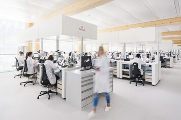 Opened in 2017, Omega's new production facility in Biel/Bienne combines the core ideas of a smart factory and integrates material flow and production for maximum performance and availability. With technical innovations and a fully optimized manufacturing process, the company is addressing a new generation of watch buyers.