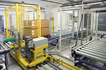 The installation of the floor conveyor technology took place during ongoing production operations in the existing building and was extremely challenging. Strict specifications with regard to energy, hygiene and safety requirements and in accordance with the "Good Distribution Practice" (GDP) regulations had to be taken into account.