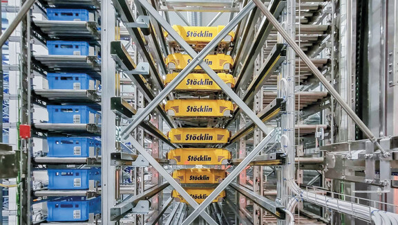 High stock levels, low assortment depth, storage as dense as possible - and yet everything can be accessed intelligently, quickly and energy-optimized 24/7: This is the area of application for fully automatic channel/compact storage systems from Stöcklin.