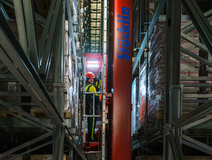 Rely on the MASTer storage and retrieval system from Stöcklin for material flow 4.0 in automated pallet warehouses.
